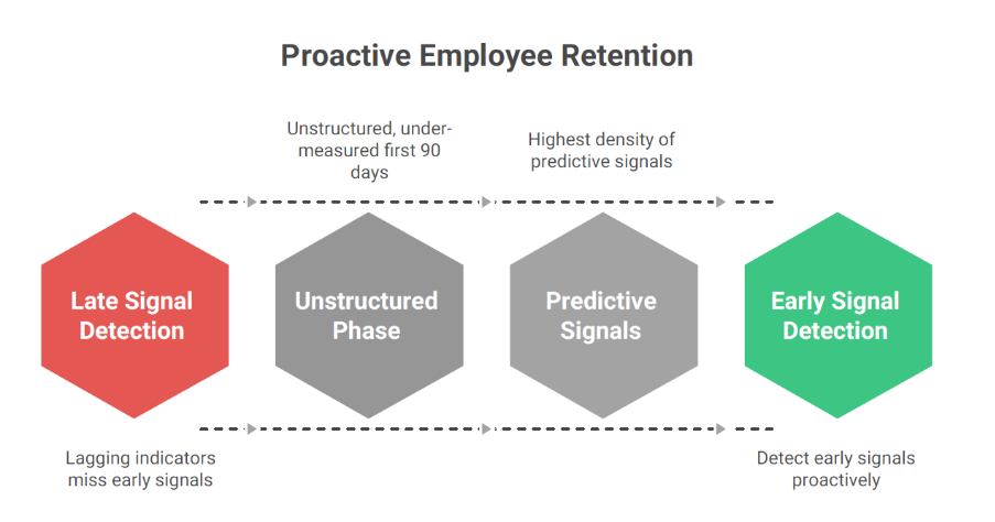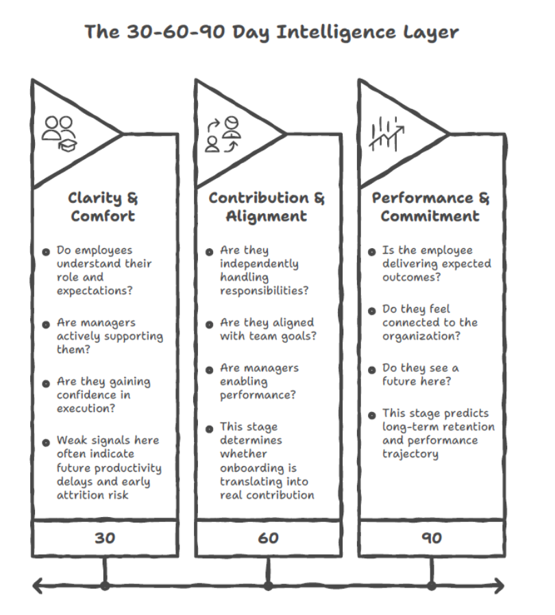 The first 90 days of an employee lifecycle contain the highest density of predictive signals, yet this phase remains largely unstructured and under-measured.